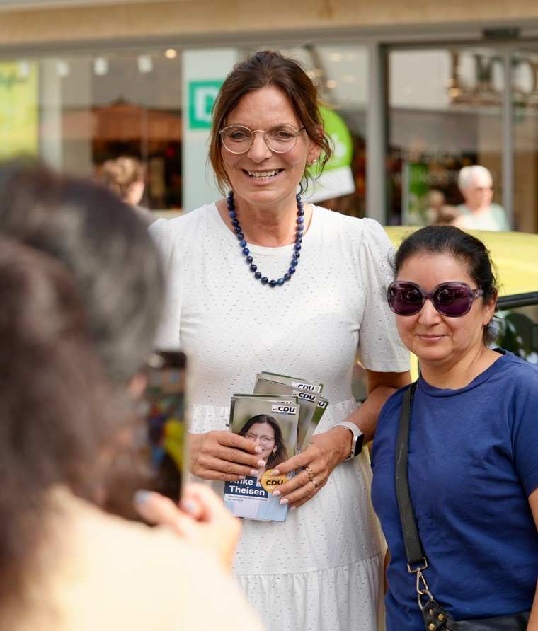 Anke Theisen ist privat eine Kriminalhauptkommissarin und engagiert sich bereits seit längerem kommunalpolitisch bei der CDU: sei es zu Themen der Sicherheit, Bildung oder auch Sauberkeit der Stadt.